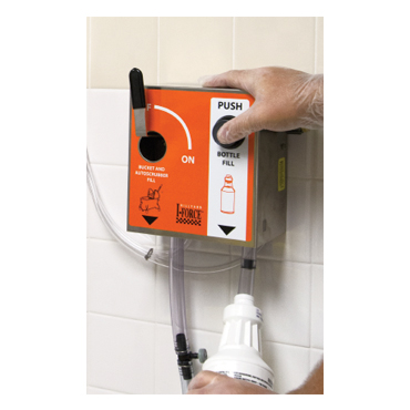 Dual flow rates allow for fast and accurate filling. Fill buckets at up to nine gallons per minute and bottles at one gallon per minute.